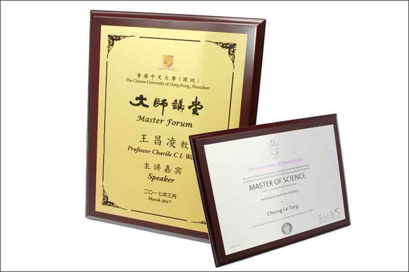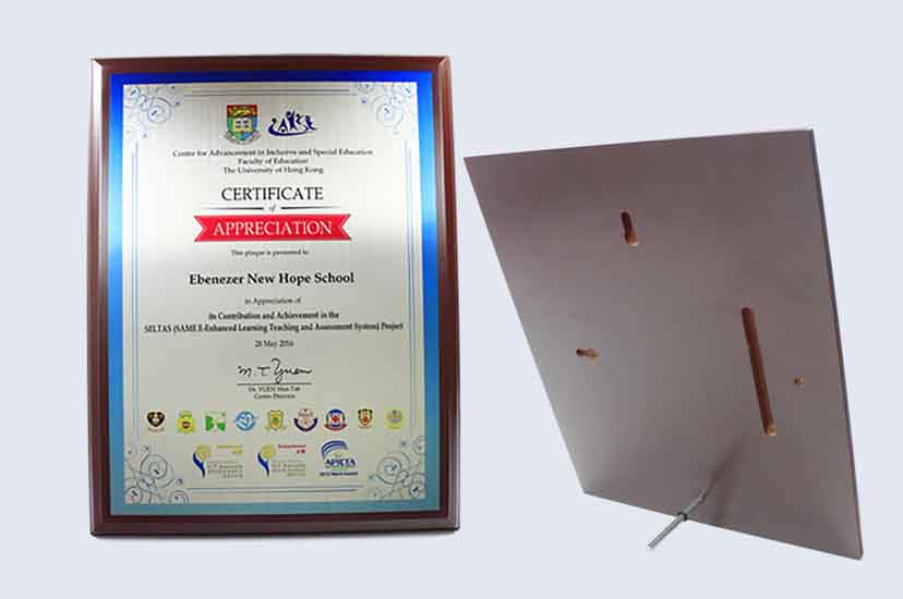 ![]() ![]() ![]() ![]() | 木牌證書-070501 價格:$150 規格:闊 240mm 高 310mm 厚 15mm 材質:密度板、金屬板彩印 顏色:金/銀色